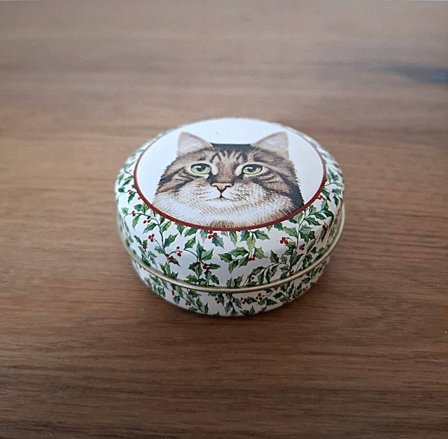 Winter Runde Blechdose mit 2 verschiedenen Katzenportraits