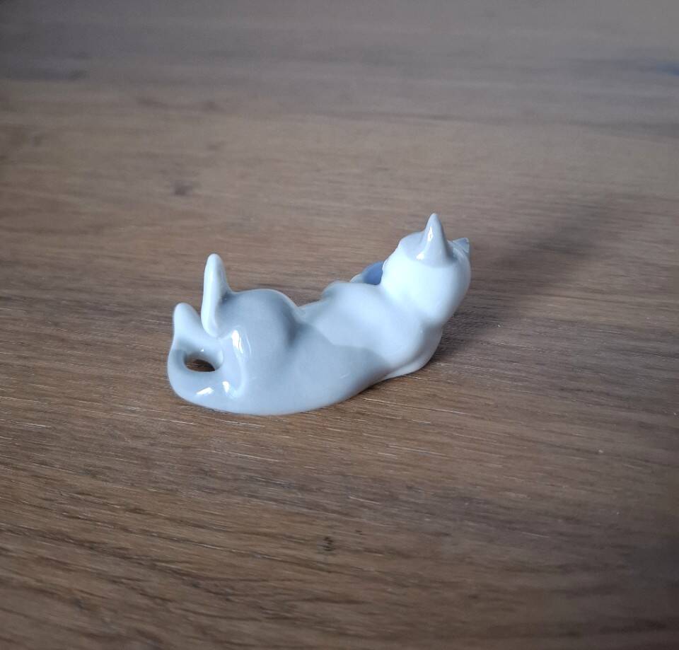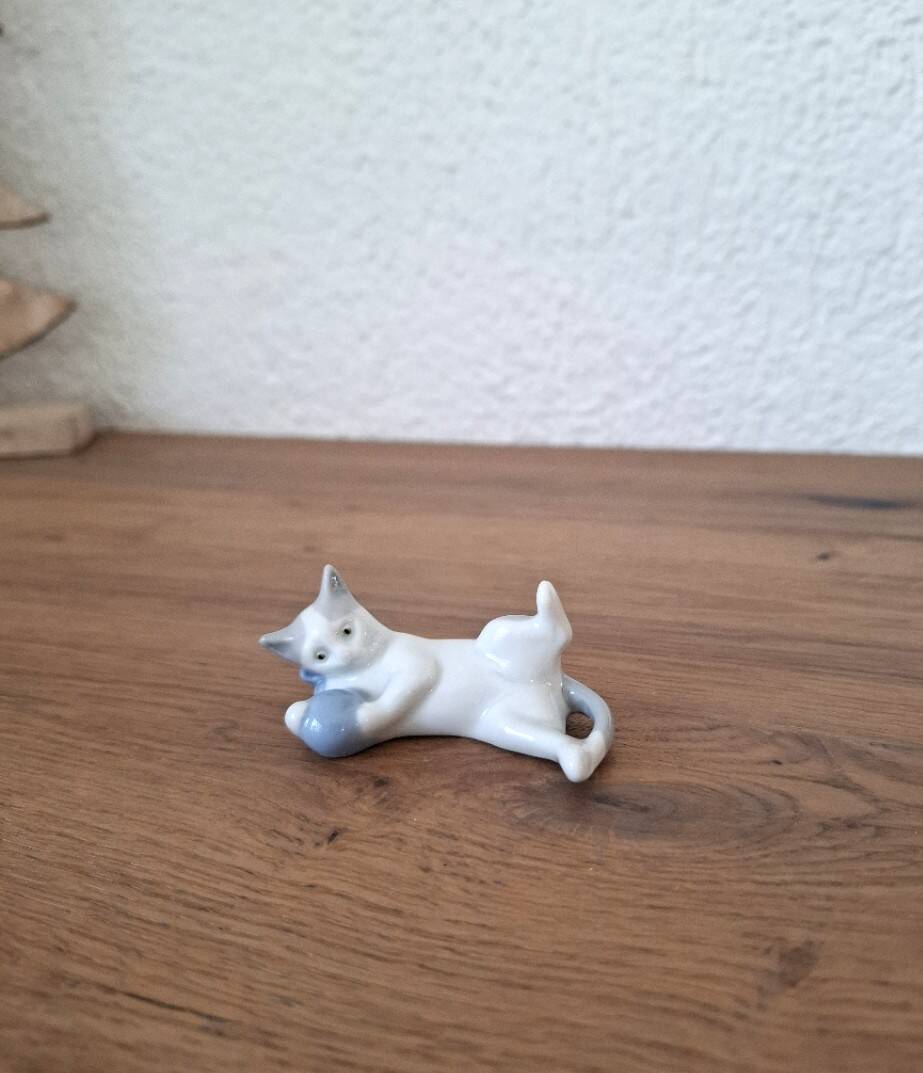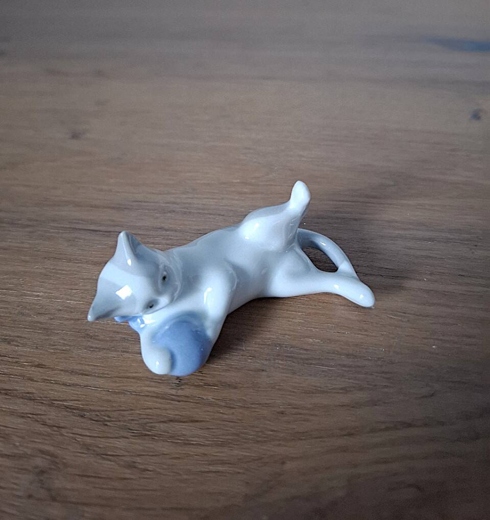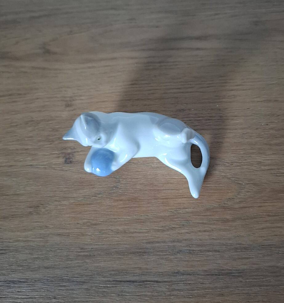 Setzkasten - Weisse Katze mit Balle zwischen den Pfoten