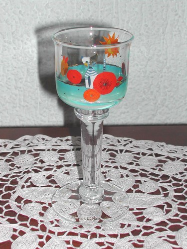 Das Glas ist mundgeblasen und darum einmalig. Kleine Lufteinschlüsse sind ein Zeichen von Handarbeit. Nicht für die Mikrowelle geeignet. Um das Dekor zu schützen, ist spülen mit der Hand empfohlen.