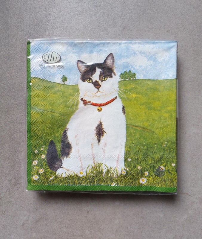 mit 4 verschiedenen Katzen auf einer Serviette,
