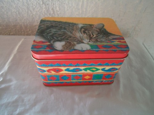 Rechteckige Büchse III mit getigerter Katze