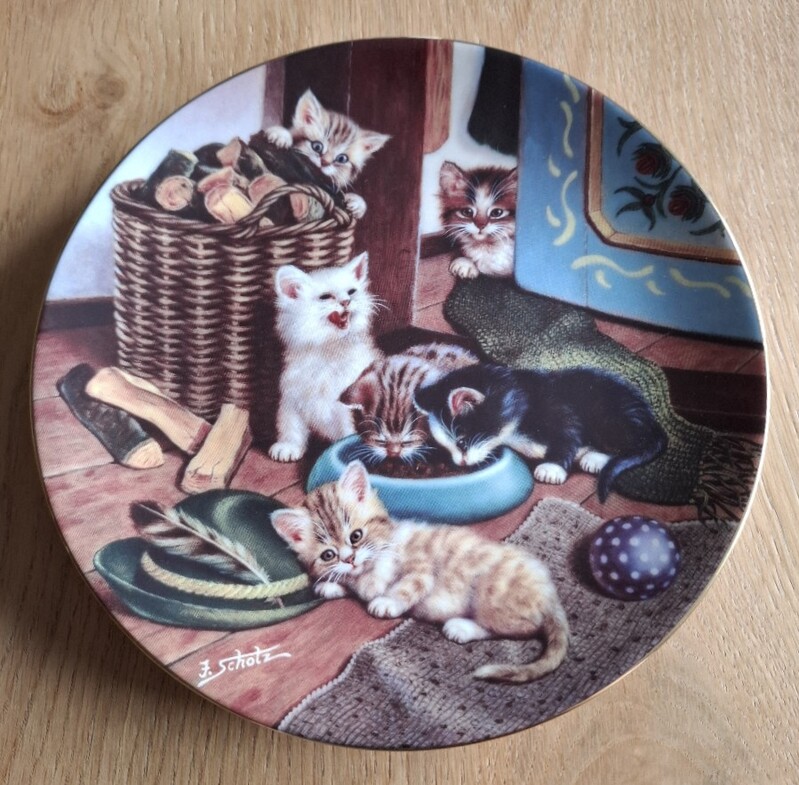 ...Sammelteller Katzen "Am Kachelofen"