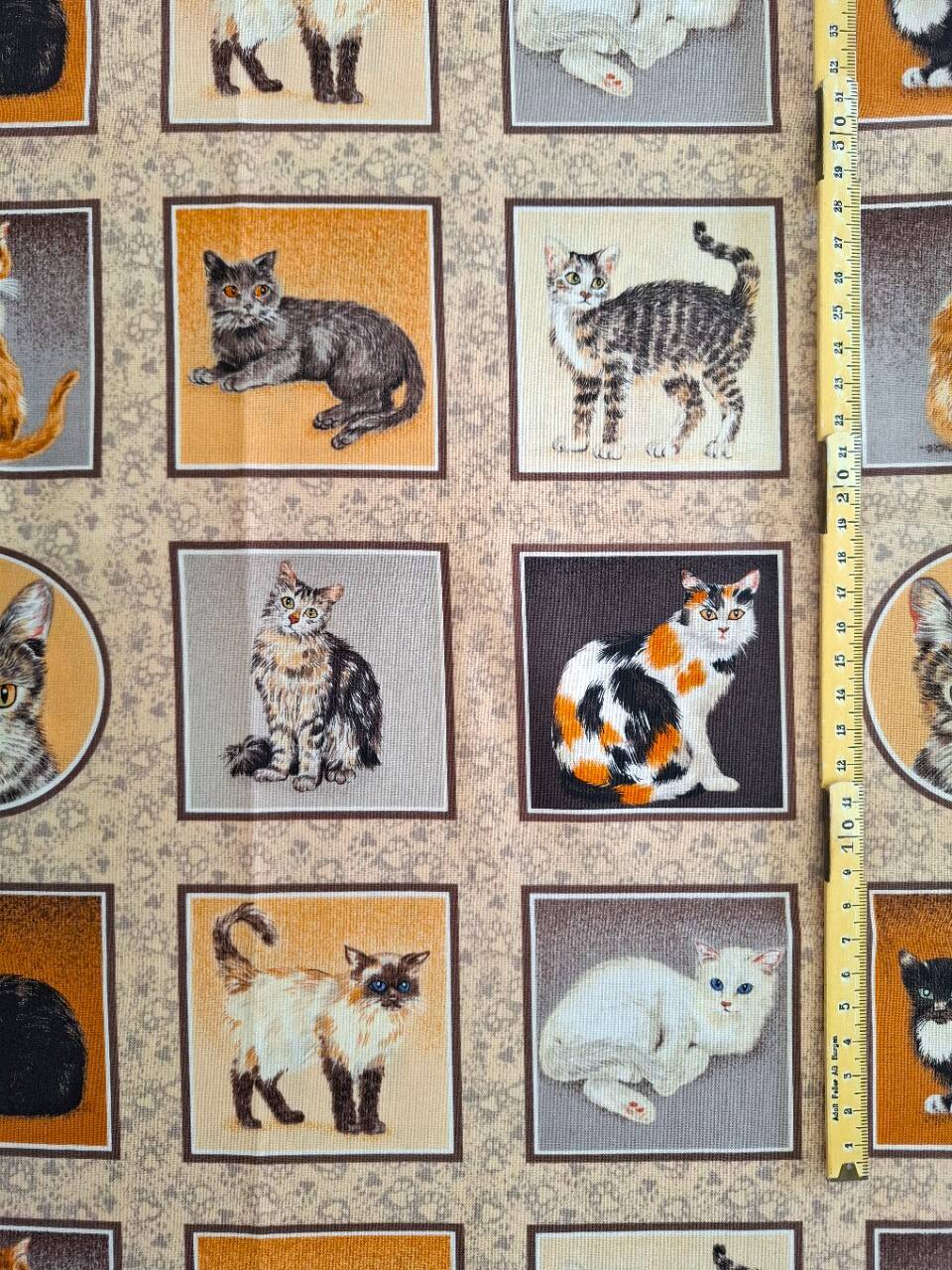 Beiger Stoff mit Katzenbildern