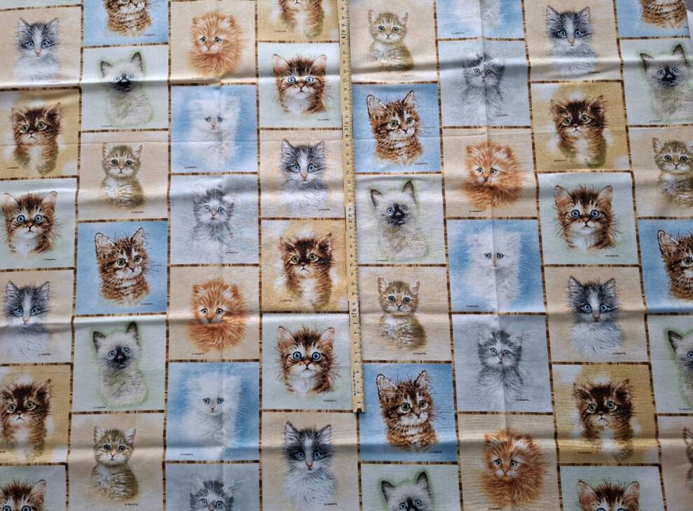 ...Stoff Katzen mit 6 grossen Bildern