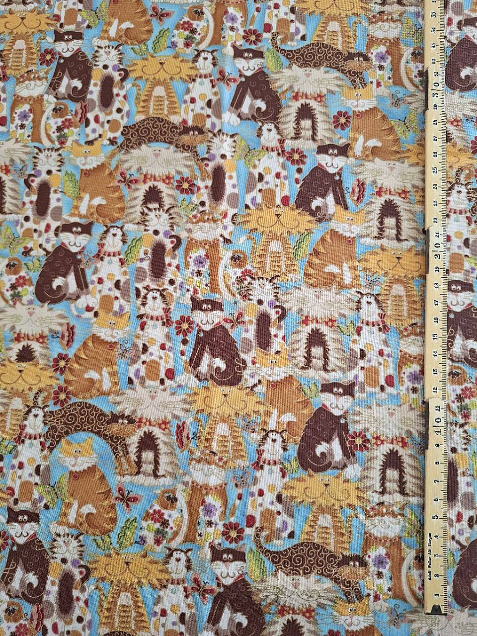 Stoff grosse, lustige Katzen mit Goldumrandung