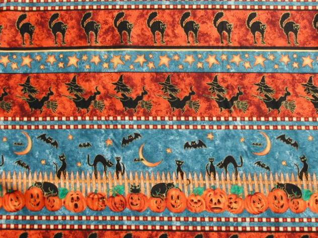 Stoff Halloween Katzen, Hexen und Kürbisse